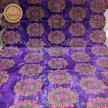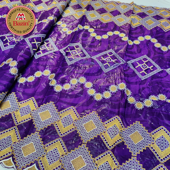 Bazin Riche สไตล์แอฟริกันสีม่วงกับหิน5หลาไนจีเรียชุดงานแต่งงานอ่าง100% ที่อุดมไปด้วยผ้าฝ้าย